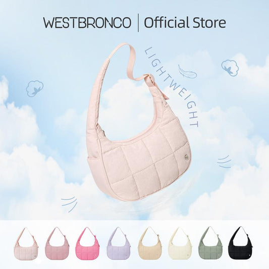 WESTBRONCO Fallfreshness Small Puffer Crescent Shoulder Bag – Quilted Nylon Waterproof Travel Purse with Side Pocket, Lightweight Gym & Everyday Tote