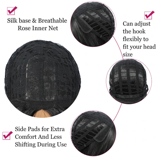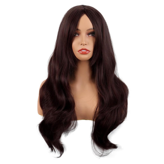 💇♀️ 26" Long Wavy Wig | Fashion Layered Curtain Bangs Synthetic Curly Hair