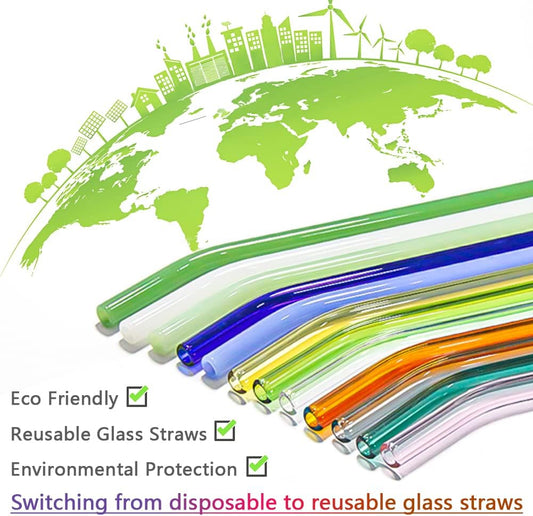 “Reusable Glass Straws – 12-Pack (6 Bent + 6 Straight), 8″ x 8 mm | BPA-Free, Eco-Friendly Wide Straws for Smoothies, Shakes & Bubble Tea”
