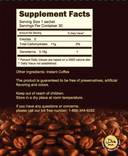 Ganoderma Coffee - Reishi Coffee Mix- Instant 2-In-1 Mushroom Coffee. All Natural Ganoderma Lucidum with Instant Coffee. a Non Sugar Dietary Supplement to Replace Regular Coffee - 30 Sachets